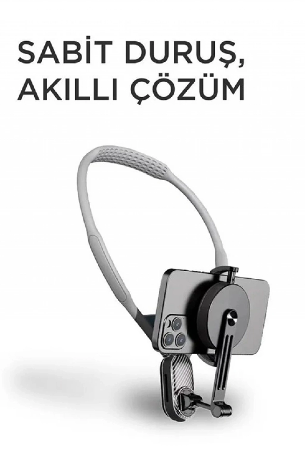 eller serbest bir deneyim sunarak video izleme, içerik izleme, çevrimiçi ders veya video aramalar sırasında rahatlık sağlayan, boyuna asılabilen bir manyetik telefon tutucudur. 360 derece dönebilir ve ayarlanabilir yapısıyla istenilen açıya kolayca uyum sağlar. Boyuna asılabilir olması sayesinde uzun süreli kullanımlarda bile konfor sunar ve boyun ağrısını azaltmaya yardımcı olur.
