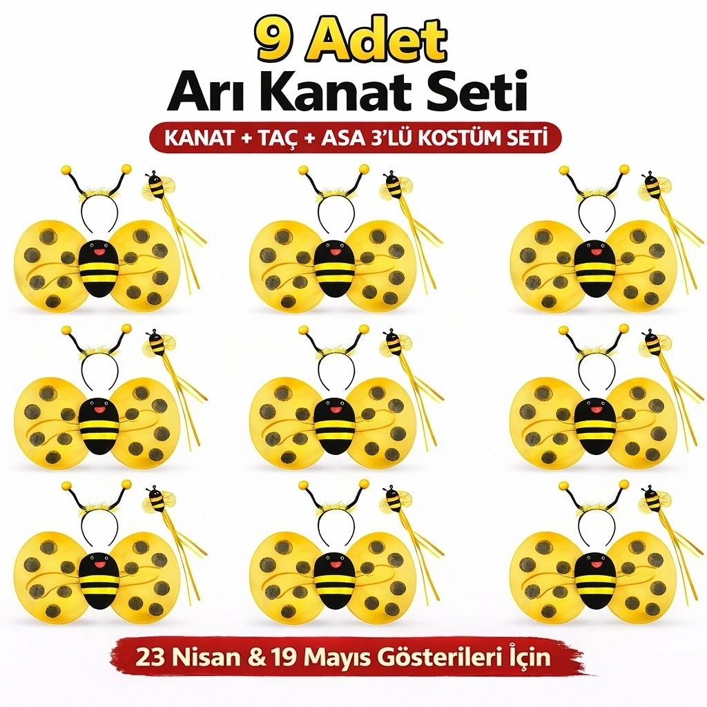 Çocukların sahnede dikkat çekmesini sağlayacak arı temalı kostüm seti, okul gösterileri ve etkinlikler için özel olarak hazırlanmıştır.