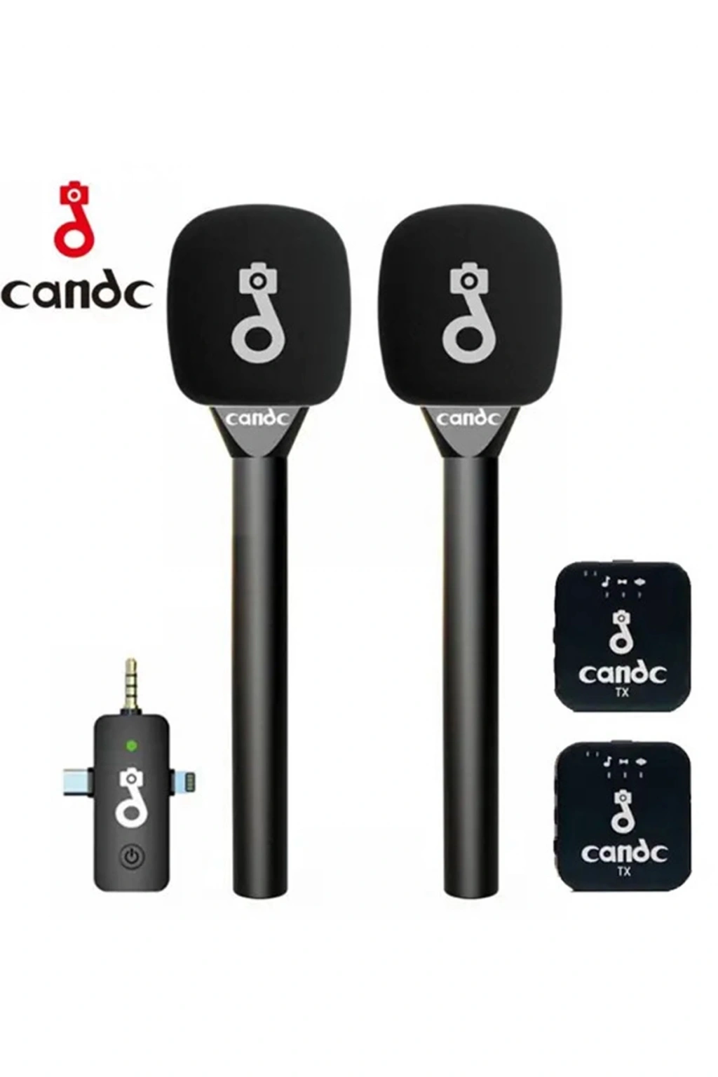 Röportajlar, içerik oluşturma, podcast'ler ve canlı yayınlar için tasarlanmış güçlü ve kullanıcı dostu   bir kablosuz mikrofon sistemi olan Candc Çift Mikrofonlu Kablosuz Röportaj Mikrofonu   profesyonel ses kaydı yapın. 2 verici ve 1 alıcı ile, iki konuşmacı arasındaki konuşmaları