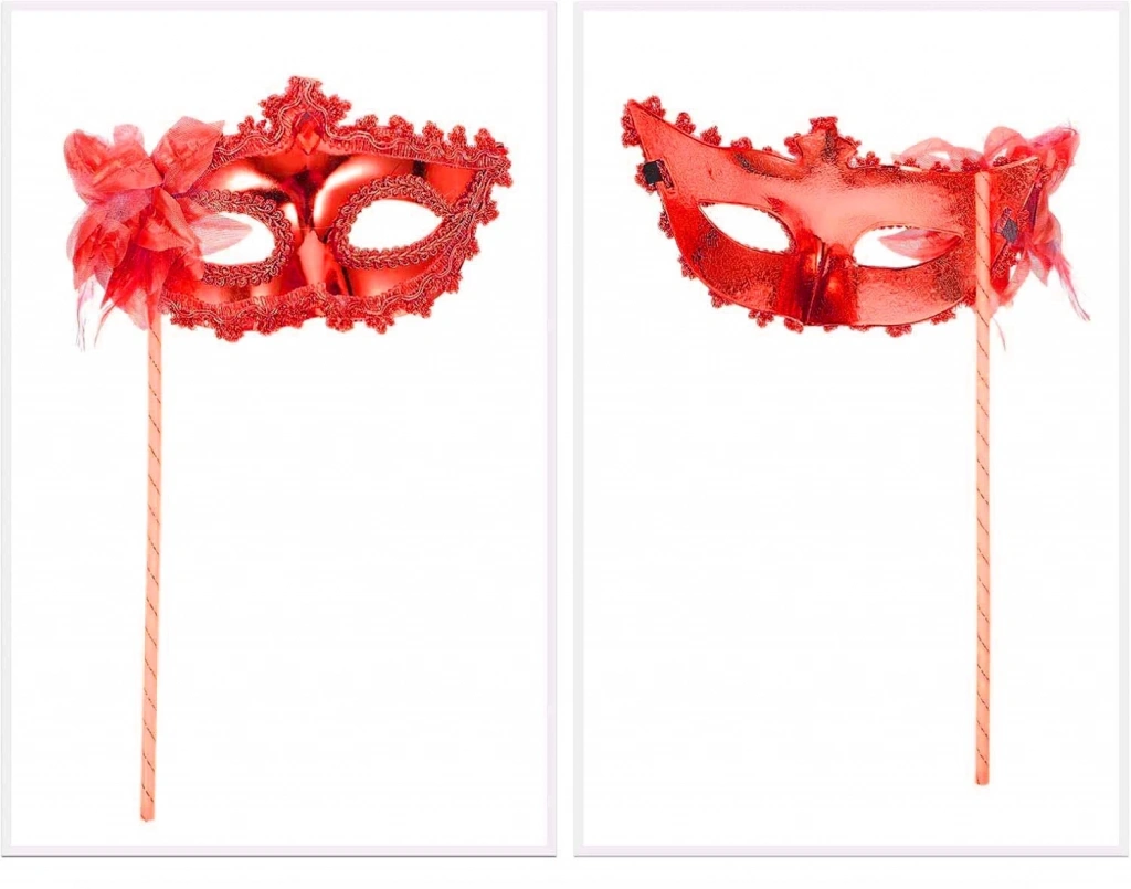 Kırmızı ışıltılı tutmalı fotoğraf çekimi maskesini, parti malzemeleri satan mağazalarda, kostüm dükkanlarında veya online alışveriş sitelerinde bulabilirsiniz.