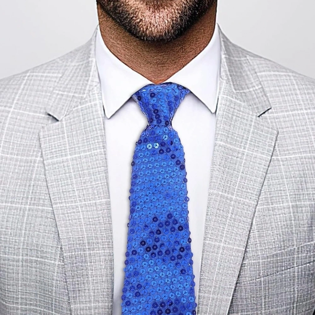 Işıltılı ve dikkat çekici bir stil arıyorsanız, mavi pul payetli parti kravatı tam size göre Parlak ve hareketli payet yüzeyi sayesinde ışığı yansıtır ve bulunduğunuz ortamda anında fark edilmenizi sağlar.