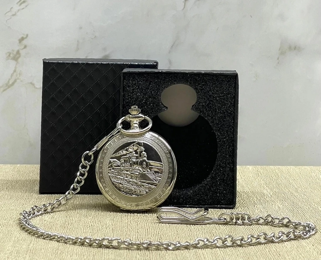 Özel Kutulu Tren Temali Gümüş Köstekli Saat Alk4675 Ürün Ölçüleri 4*5 Cm